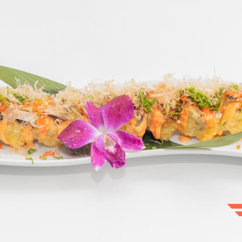 shrimp tempura, cream cheese, and spicy tuna; topped with spicy mayo, eel sauce, and pickled jalapenos.